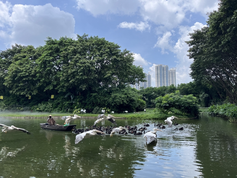 拍摄内容:园中湿地上,各种鸟儿翩跹飞翔,铺展出人与自然和谐共生的美好画卷。