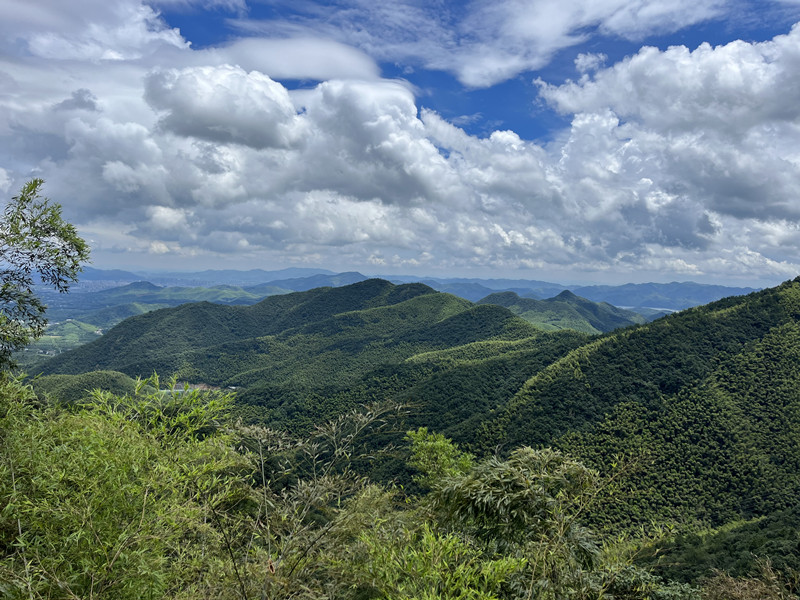 拍摄内容:白云朵朵,壮美如画。连绵起伏的山峰,仿佛护卫着这片绿水青山。