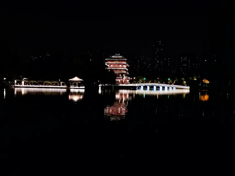拍摄内容:夜幕降临,华灯初上,光影交织中的逍遥津在这一静一动之间,为游人们呈现出了一番不一样的景致。