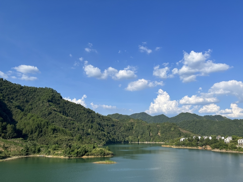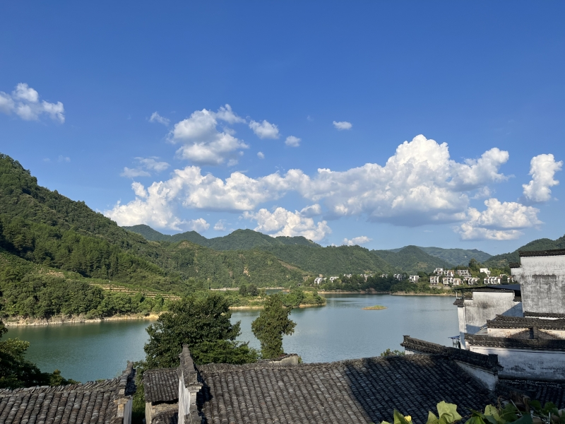拍摄内容:白墙灰瓦的民房掩映在绿水青山之间,构成了一幅清远雅致的山水画。