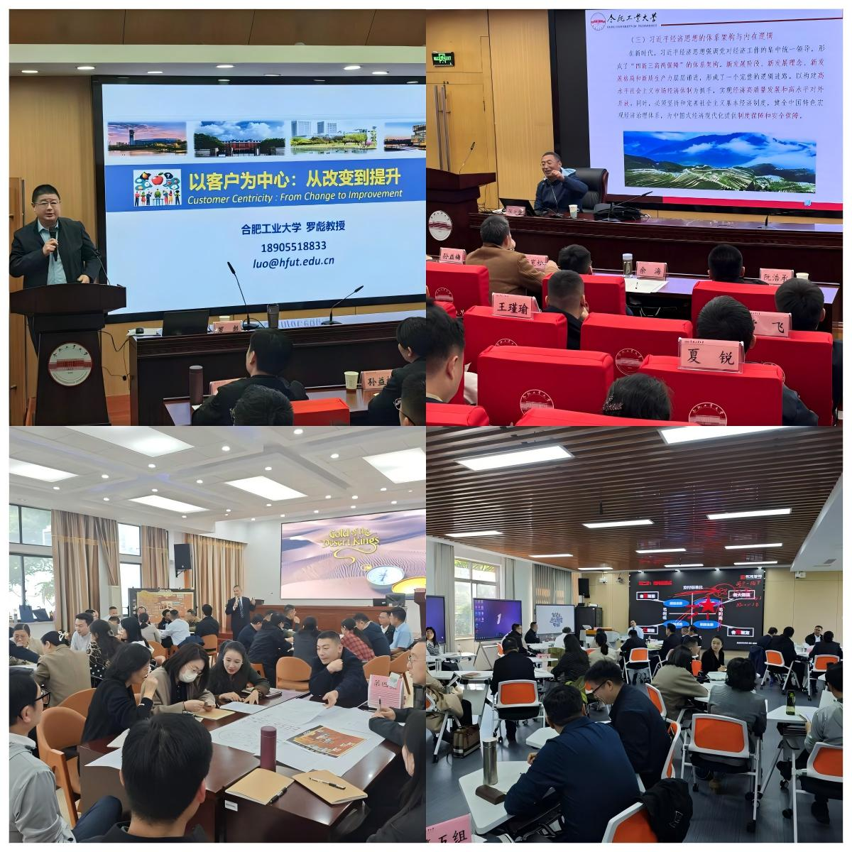 本次培训全程三天两晚,围绕习近平经济思想、客户思维、管理者能力建设、经营管理等专题,邀请合工大知名教授和外部实战派专家授课,并引入沙盘模拟和分组研讨等环节,全面强化学员的政治素养、管理水平和协作能力。