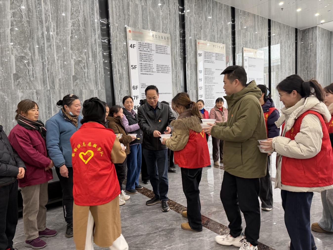 徽商物产公司领导代表为工投社区的保洁人员、维修师傅送去热气腾腾的元宵,致以节日问候。随后,“徽钢侠”志愿服务队队员在园区公共区域开展“清洁家园”行动,清理卫生死角,美化社区环境。